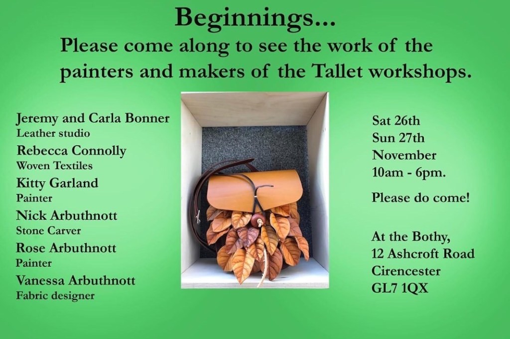 Beginnings – a show of work from The Tallet Workshop painters, makers and designers November 9, 2022 ~ rebeccaconnollydesign ~ Leave a comment