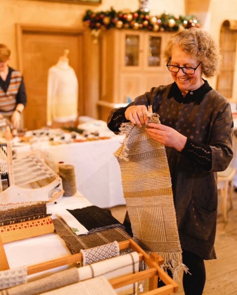 As weave tutor for Highgrove Traditional Crafts I was invited to display the work I do with the students – obviously this had to include a working loom! Woven designs and pieces from my professional practice were included in the display; apart from being admired they were a catalyst for interesting conversations about provenance and sustainability of the British Wools I use.